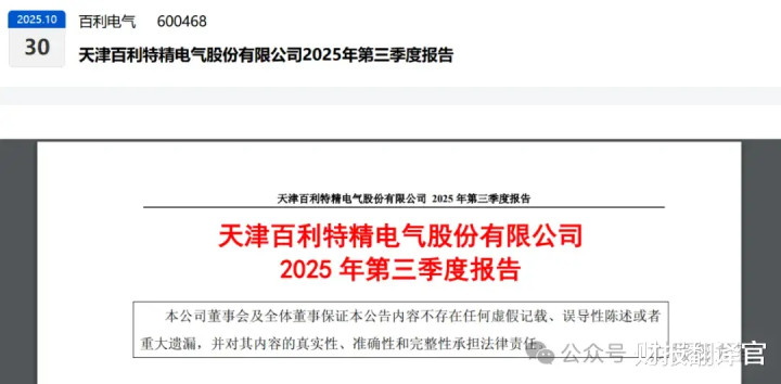 各位粉丝大家好,我是财官。一份最新的公司档案摆在面前。第一眼,一个数字让人心下一沉:百利电气前三季度业绩8276.32万元,同比下滑19.62%。在追求“业绩为王”的市场里,这似乎是一张不太及格的首印象。然而,就在同一页,另一组数据却闪烁着灼人的热度。